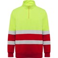 Pull haute visibilité avec demi-zip, col haut, protège-menton et tirette.